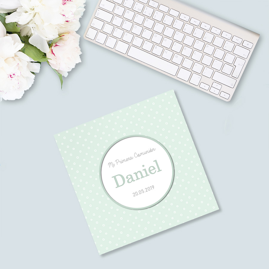 Medidas del recordatorio (doblado): 14 x 14 cm.