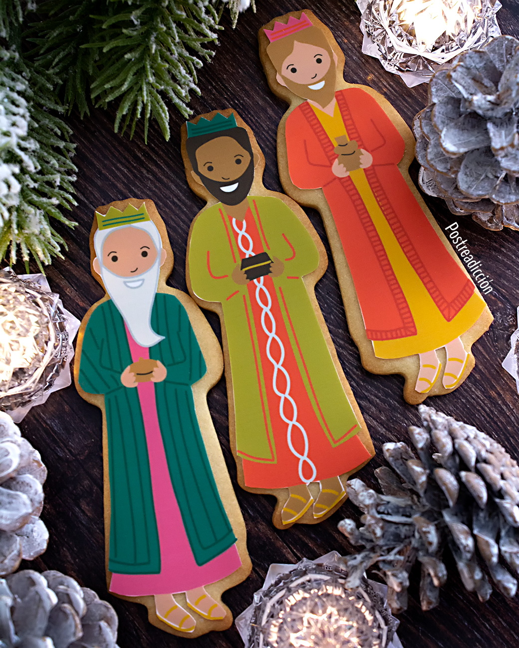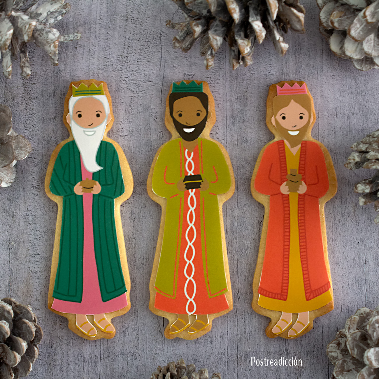 El mismo cortador sirve para los tres Reyes Magos. No olvides cortar dos galletas mirando hacia la izquierda y una mirando hacia la derecha.